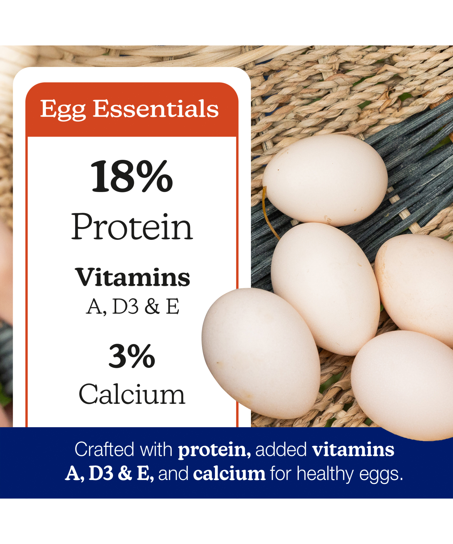Protein, vitamins A, D3 & E, and calcium are all important for egg production. NatureWise Harvest Blend 18% Protein Textured Layer Feed is crafted with Egg Essentials to help your hens lay healthy eggs with bright yolks.