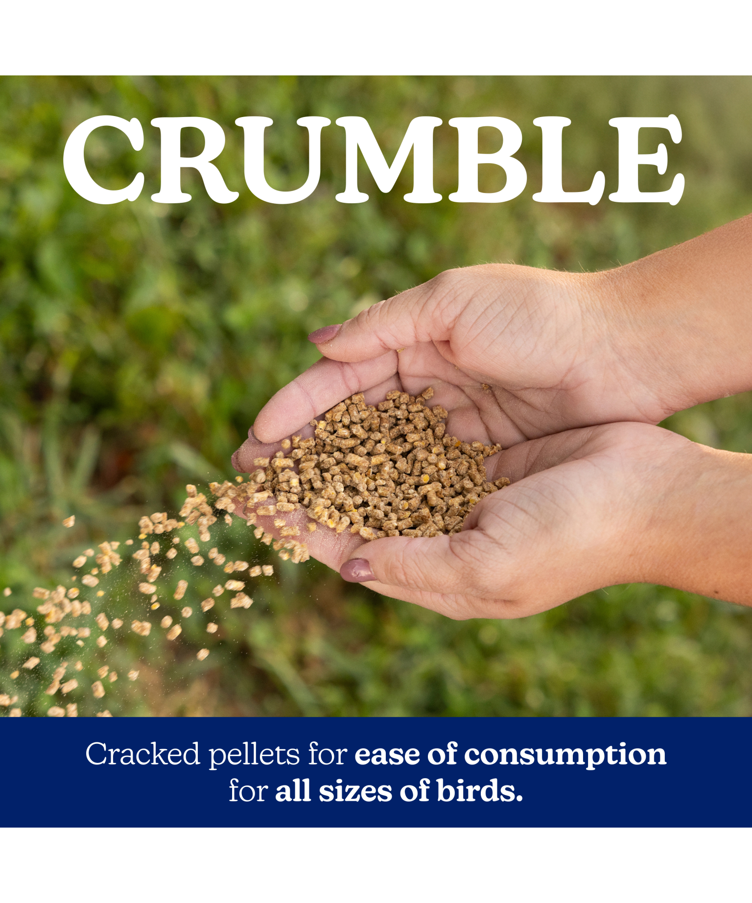 The best feed form for your flock depends on their age, needs, and breed. NatureWise Meatbird Start to Finish 22% Protein Crumble comes in a crumble form. A crumble is a cracked pellet that helps with the ease of consumption for all sizes of birds.