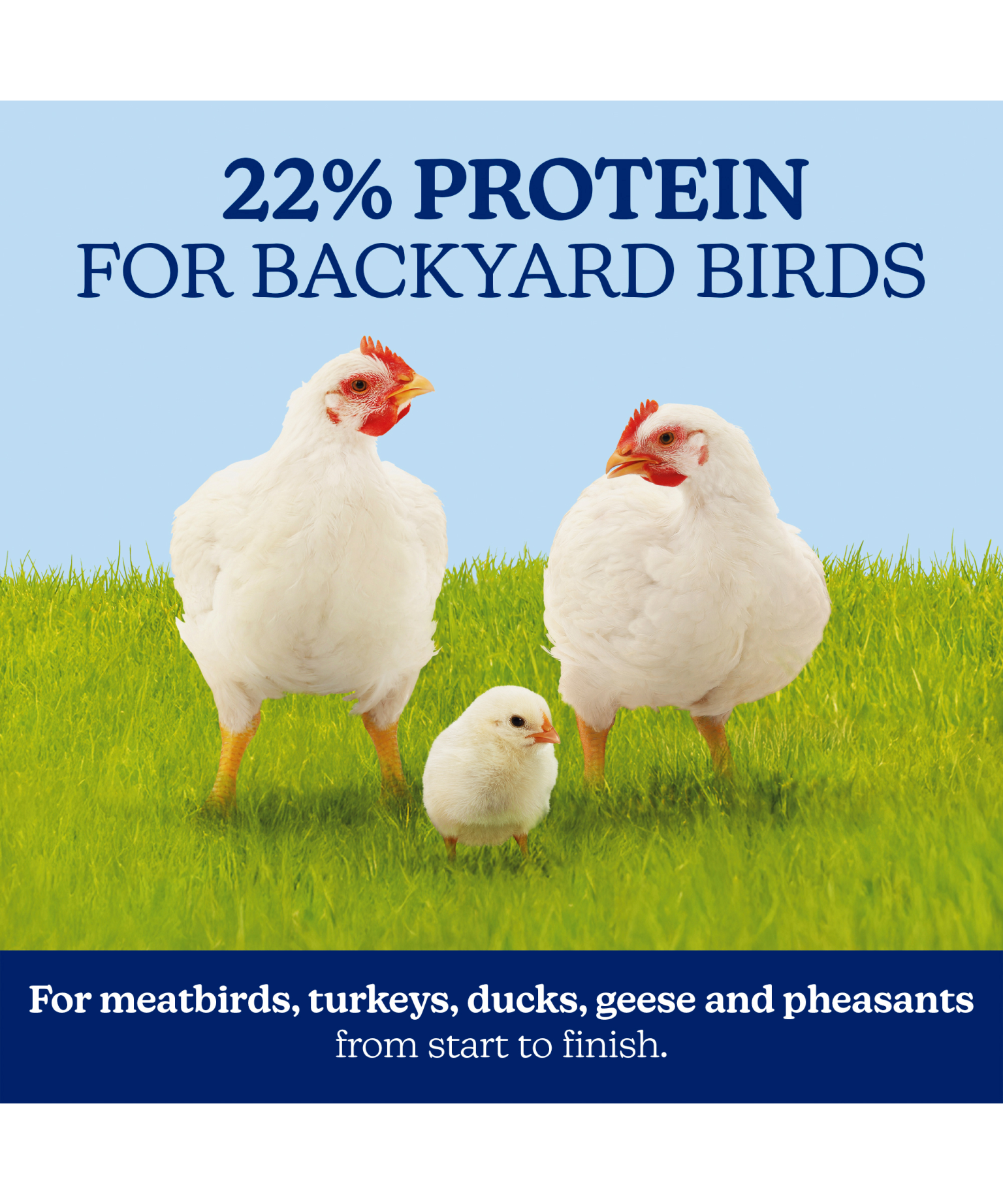 Vitamins A, D3 & E, and lysine are important for healthy growth in meatbirds. NatureWise Meatbird Start to Finish 22% Protein Crumble is formulated with Growth Essentials to support hearty, robust growth from hatch to finish.